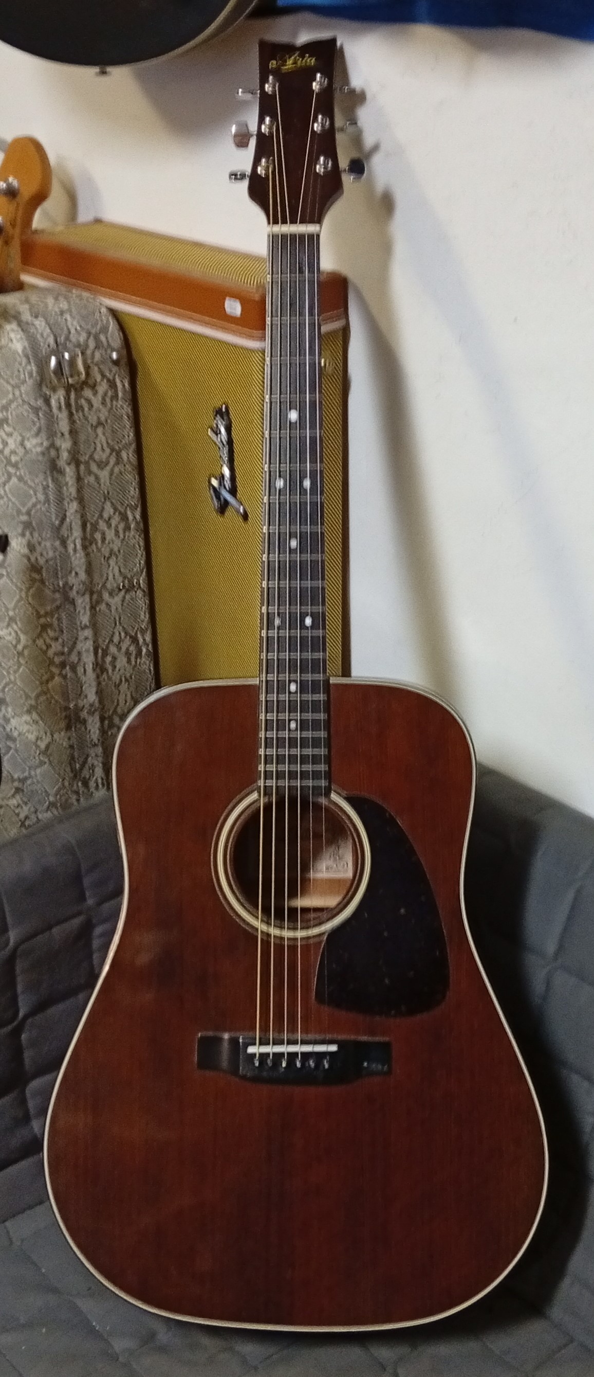Aria LW 15-N dreadnougt akusztikus gitár. Japánban készült a nyolcvanas évek legelején. A fedlap tömör. 50 éves kora ellenére nagyon szép állapot. Használt.