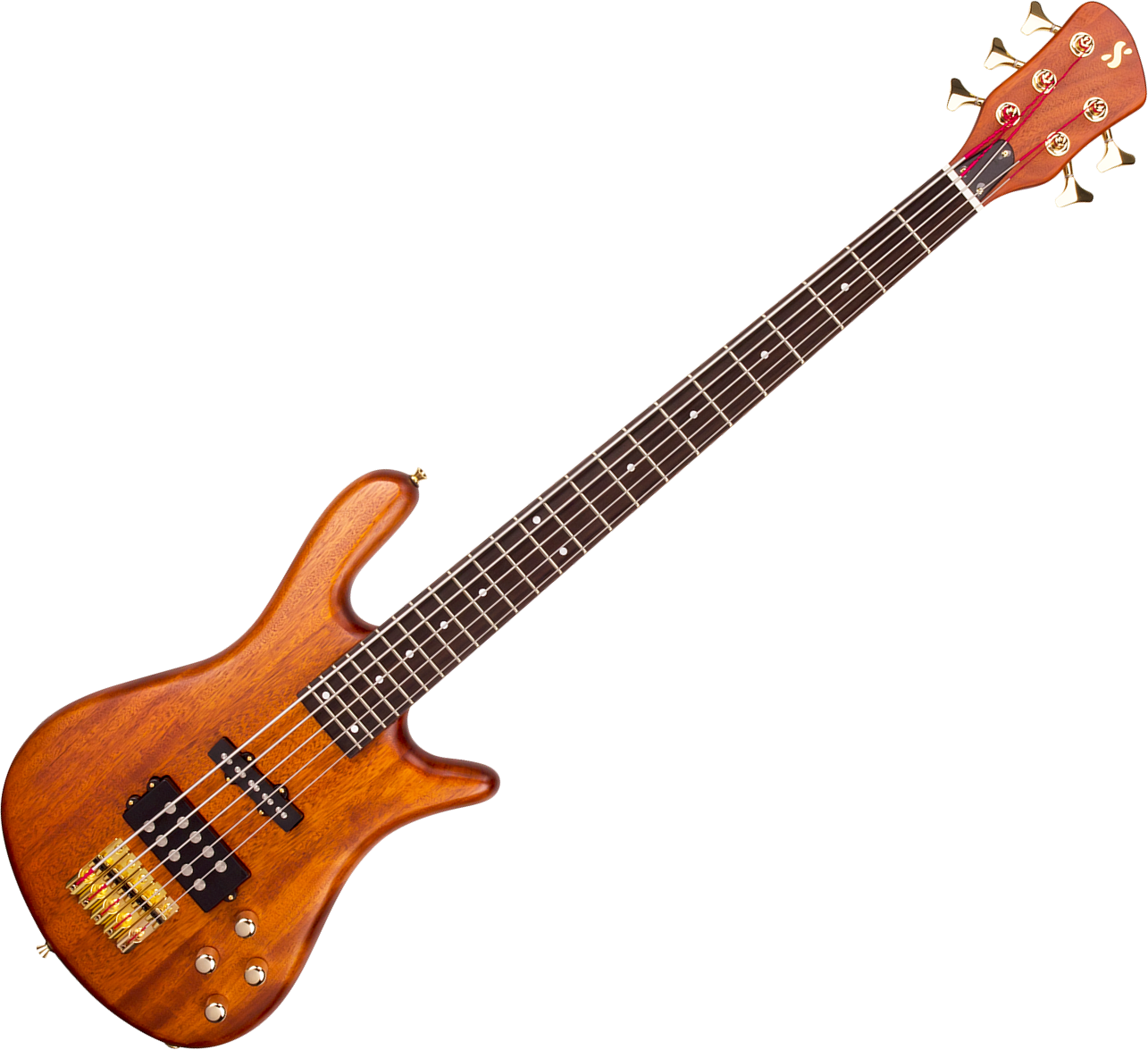 elektromos basszusgitár: 5 húros modell, mahagóni test, ragasztott mahagóni nyak, rózsafa fogólap, 24 érintő, 1x Single Coil és 1x Humbucker hangszedők, J/H Active hangszedő, 3 sávos EQ (Treble, Middle, Bass), hangerő és hangszín szabályzók, arany szerelékek, natúr szín.